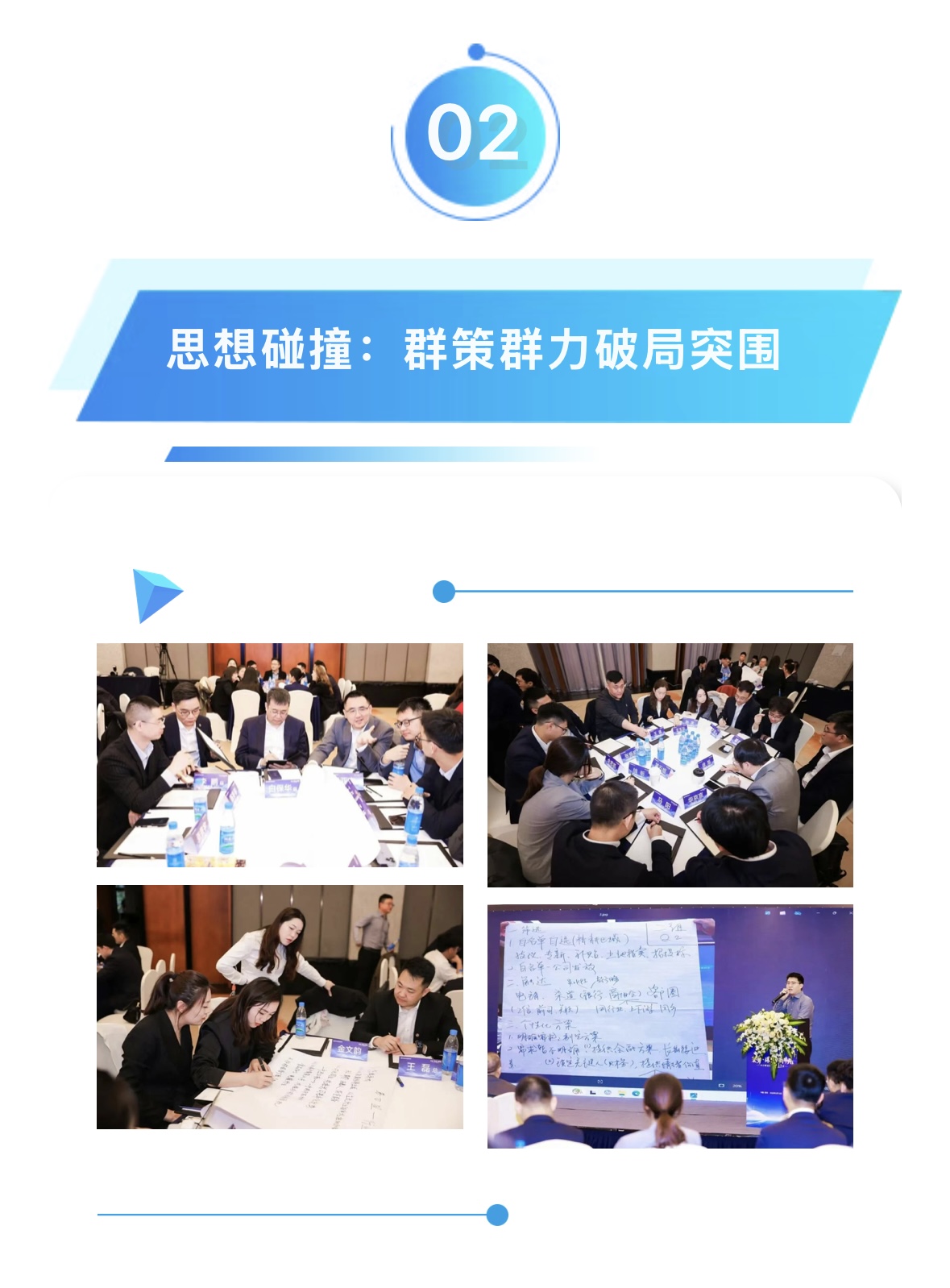 在“渠道深耕”“精準獲客”“收益提升”“差異化破局”等核心議題的研討環節,現場氛圍熱烈非凡,團隊成員分組討論,打破區域與部門的劃分,以務實實戰的視角全身心投入到頭腦風暴之中。從客戶畫像建模到同業競爭策略,從資源整合路徑到風控前置方案,豐富的實操經驗在團隊間充分流動、相互賦能,全方位推動團隊成長,為業務的發展補充了源源不斷的新動能。